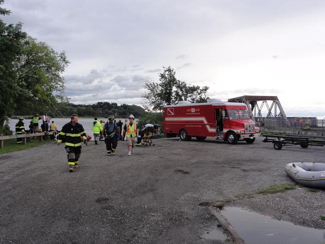 Croton Police and Fire were dispatched to Mayo's landing, with reports a raft floating down the river, and it soon became apparent that multiple persons were still trapped in the water. Croton Car 2083 immediately requested Yorktown's Swift Water rescue team, and Rescue 55 along with Rescue Boat 55 and 56 were en route moments later.