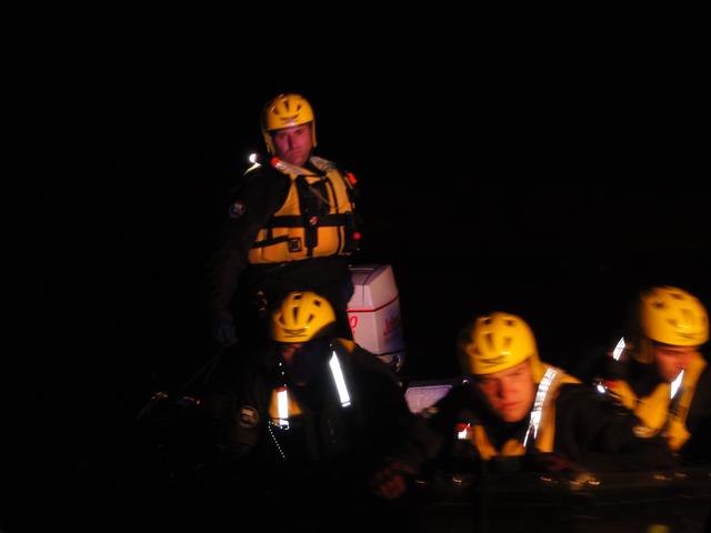 Rescue boat 55 attempted to grab the victim, but he was moving too fast to effect a safe rescue, and was later picked up by Croton PD's marine unit at the opening of the Hudson river. At this time, the sun had completely set, and units were operating in completely blackout conditions. Rescue boat 55, and County Tech Rescue boat 77, then had to wait for an aviation unit to provide a spot light to safely navigate the river back to Mayo's landing to exit the river. NYPD aviation arrived, and lit the way safely home for the two units.